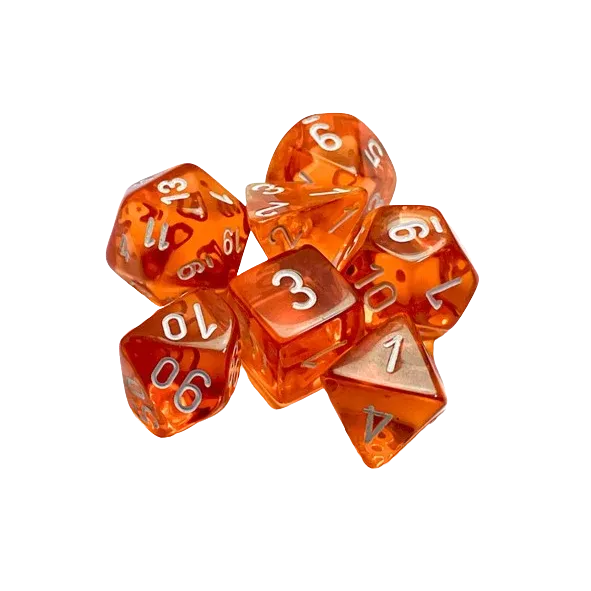 Translucent Poly Dice Set Orange/White