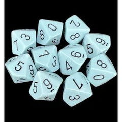 Beautifully crafted dice by Chessex for all your role playing and wargaming needs. Each set contains one each of: D20, D12, D10, D8, D6, D4 and percentage die. Numerals (not pips) are embossed in contrasting colours for high visibility, and rounded corners provide perfect rolling.