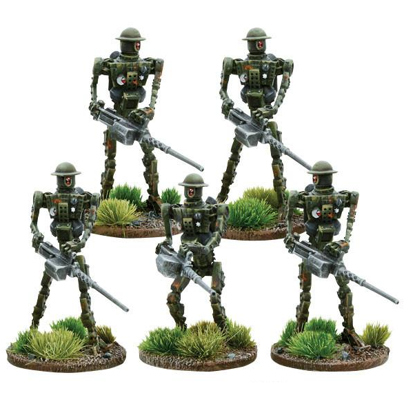 Automated Infantry can act like mobile machine gun teams, being able to equip an heavy machine gun and support any unit with a huge volley of fire. Whilst individually tough, each casualty will hurt so ensure they are behind cover or give them appropriate support.