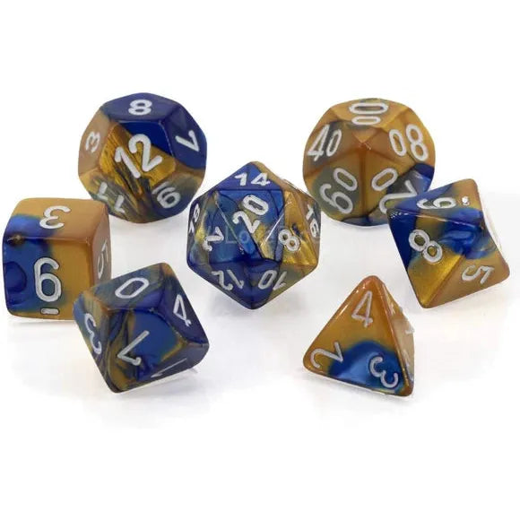 Gemini Chessex Poly Dice Set Blue-Gold/White