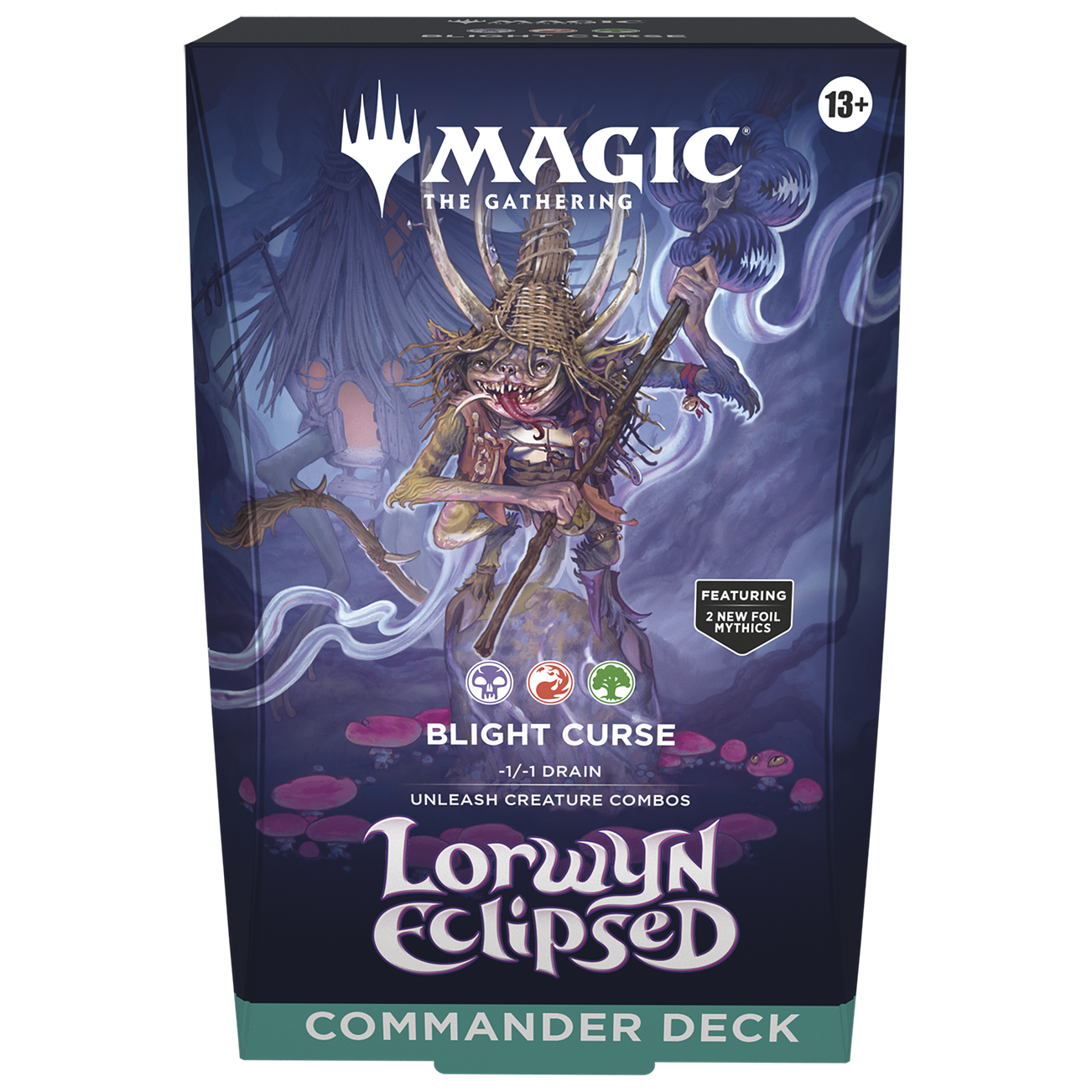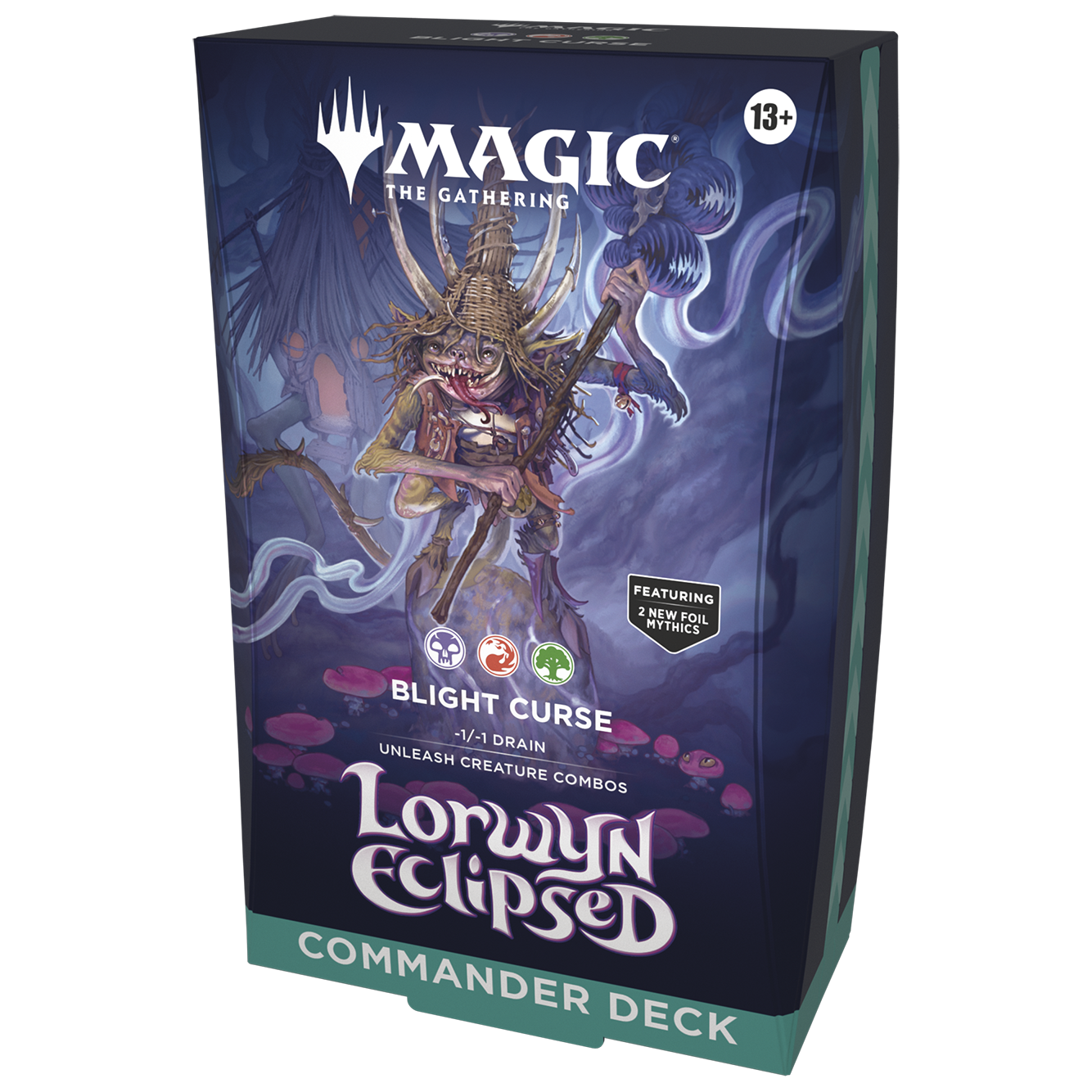 - CONTENTS—100-card Blight Curse deck with 12 new cards (including 2 foil Mythics), deck box, 10 double-sided token cards, strategy insert, reference card