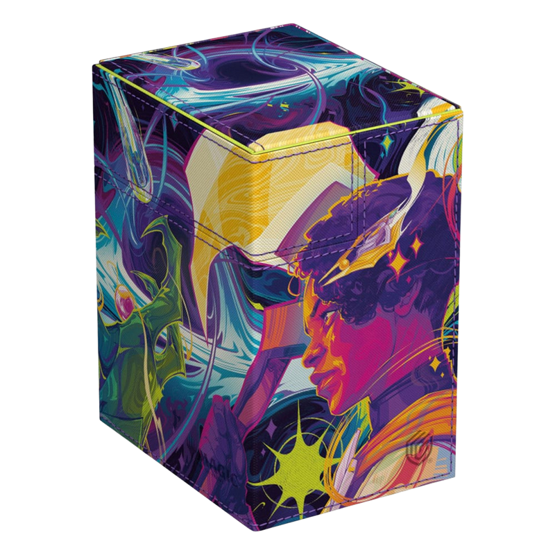 Ultimate Guard's Flip'n'Tray 133+ Xenoskin meets officially licensed artwork from Magic: The Gathering for the first time: The Edge of Eternities-style deck box, made of full-color printed, resistant Xenoskin material, not only offers space for 133 double-sleeved cards in Ultimate Guard sleeves, but also an integrated and removable dice tray. The Flip'n'Tray 133+ Xenoskin is the perfect deckbox for Commander/EDH decks and features reliable and strong magnetic closures for safe storage of cards and accessories.