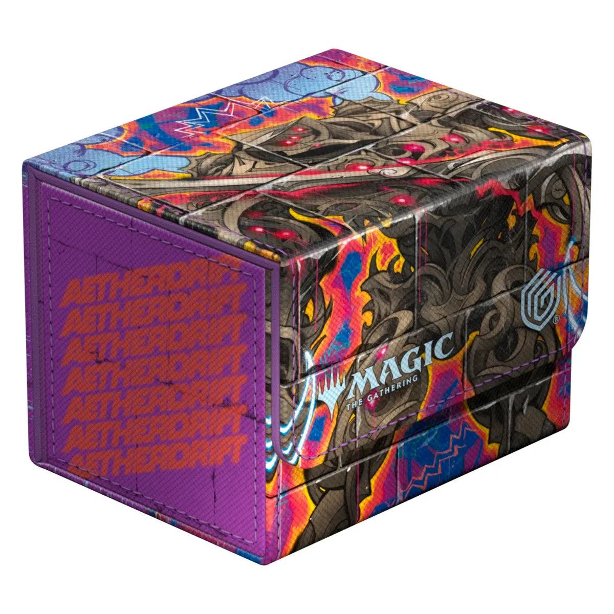 The Sidewinder 100+, made of durable Xenoskin material, holds up to 100 (double-sleeved) or 120 (single-sleeved) cards and is the perfect deck box for Commander/EDH decks. Printed in full color with officially licensed artworks from Magic: The Gathering's Aetherdrift, Ultimate Guard's Sidewinder deck boxes with their strong magnetic closure and quality microfiber inner lining are a safe and reliable storage place for MTG decks and individual trading cards.